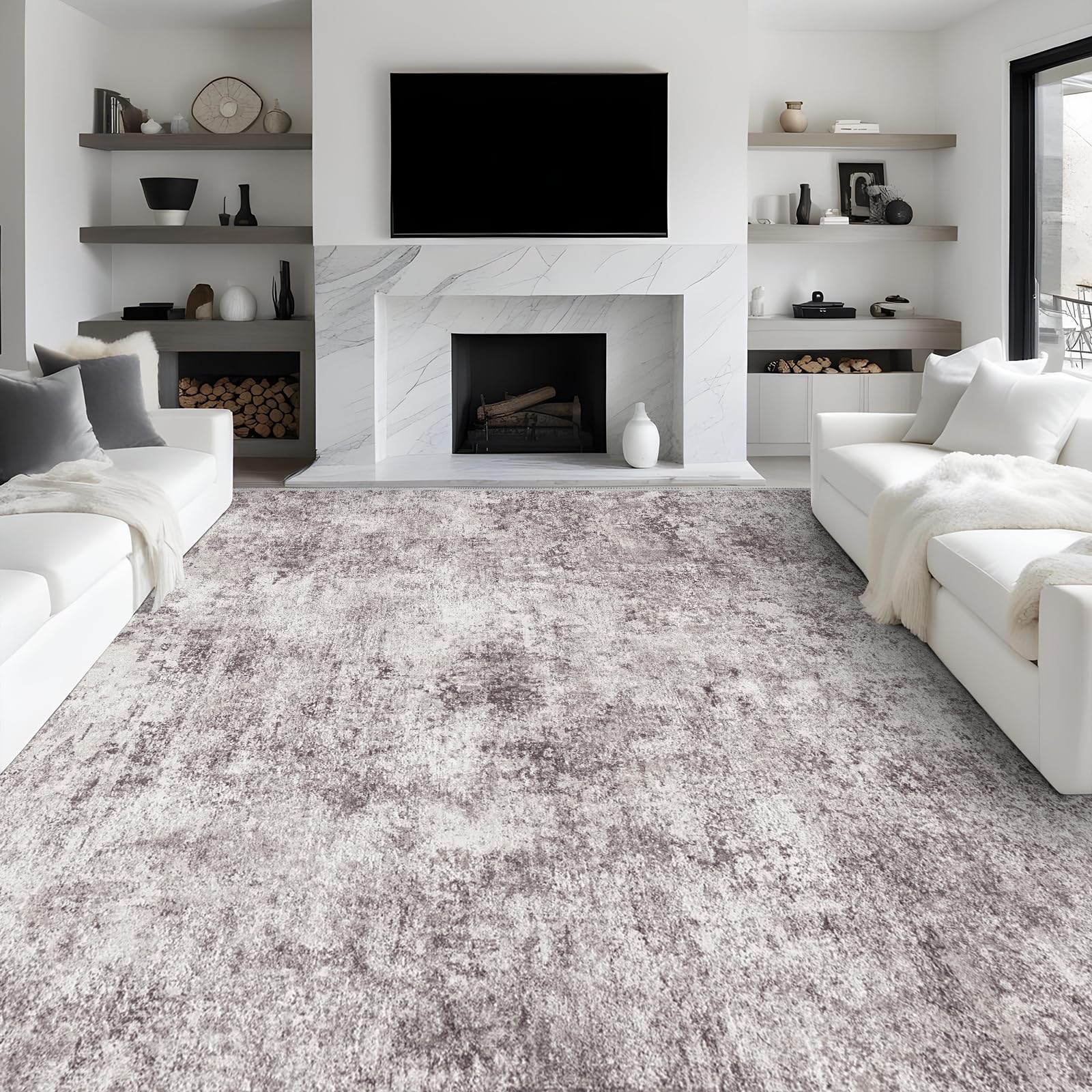 Abstract Washable 9x12 Rug: Ultra Non-Slip Soft Carpet for Living Room & Bedroom Decor - Distressed, Stain Resistant, Fo